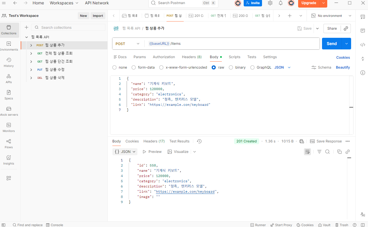 🚩Postman을 사용하여 API를 직접 호출하고 응답을 검증