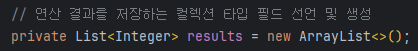 // 연산 결과를 저장하는 컬렉션 타입 필드 선언 및 생성