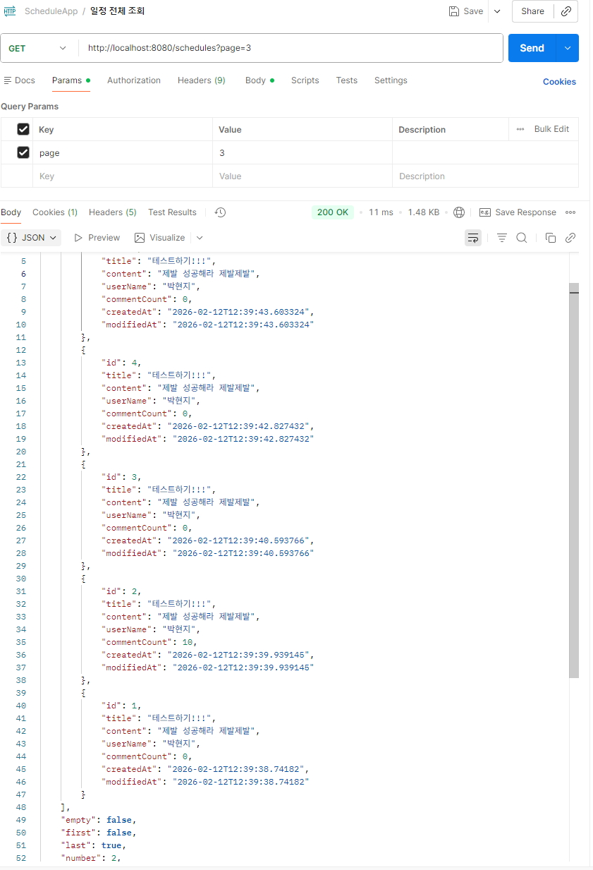 ` /schedules?page=1&size=10` 이런 식으로 내려야 될 것 같아서
