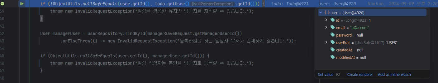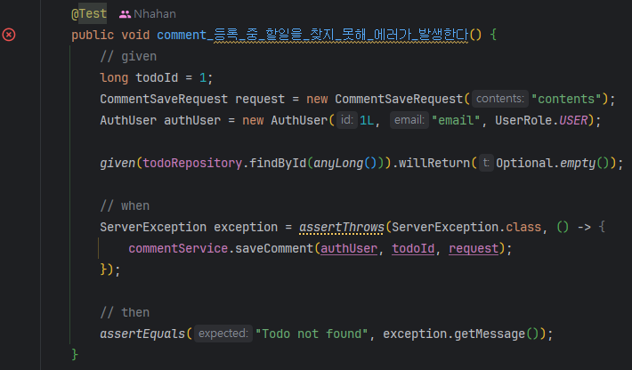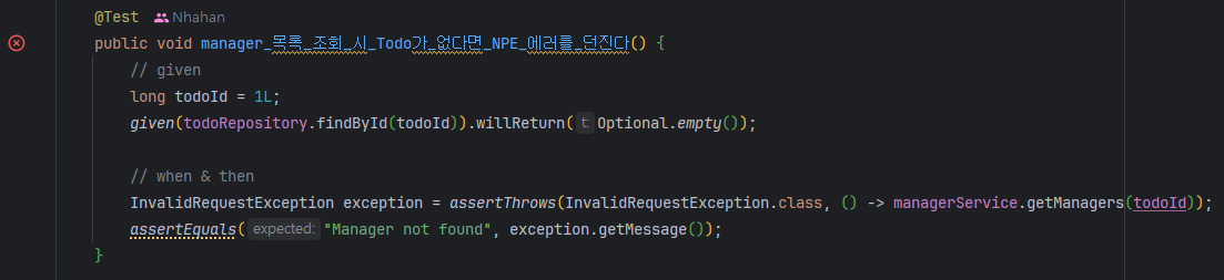 따로 분리해서 작성을 하면 더 가독성이 좋을 것 같은데요? 위에 if문이 true가 나와서 throw로 던져질 거면......