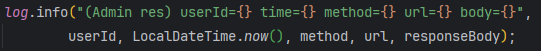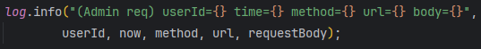 log.info("[ADMIN API 요청] userId={} time={} method={} url={} params={}",